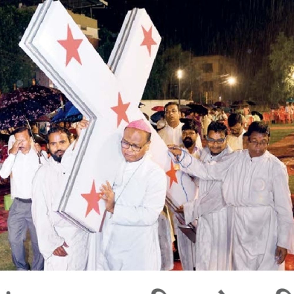 क्रूस रास्ता में 14 स्थानों की घटनाओं का स्मरण…पास्का जागरण आज रांची| आर्चबिशप विसेंट आईंद ने पुण्य शुक्रवार की धर्मविधि में अपने कंधों पर क्रूस ढोया। विश्वासी उनके साथ क्रूस रास्ता की प्रार्थना में शामिल हुए। इस दौरान प्रभु येसु को क्रूसित किए जाने के समय घटी 14 घटनाओं का स्मरण किया गया। क्रूस रास्ता या वे ऑफ द क्रॉस में येसु के दुखभोग, अपमान और बलिदान को याद किया जाता है। आर्चबिशप ने अपने संदेश में कहा कि येसु ने मानव जाति के पापों के प्रायश्चित के लिए स्वयं को बलिदान कर दिया। क्रूस प्रेम, क्षमा और मुक्ति का प्रतीक है। पूरे धर्मविधि के दौरान तेज बारिश होती रही, लेकिन विश्वासी श्रद्धा और भक्ति के साथ लगातार प्रार्थना करते रहे। शनिवार को पास्का जागरण की धर्मविधि होगी। 5 अप्रैल को ईस्टर मनाया जाएगा। ईस्टर प्रभु के पुनरुत्थान की खुशी में मनाया जाता है। धर्म }समाज }संस्था पेज भी पढ़ें कुल पेज 16, मूल्य °™~6.00 वर्ष 16, अंक 218 12 राज्य ¿ 61 संस्करण रांची के लोयला मैदान में गुड फ्राइडे पर विशेष धर्मविधि हुई। बारिश के बीच मसीही विश्वासी क्रूस रास्ता प्रार्थना में शामिल हुए और प्रभु येसु के बलिदान को याद किया। वैशाख कृष्ण पक्ष-2/3, 2083 रांची, झारखंड, शनिवार 4 अप्रैल, 2026 देश का नंबर 1 अखबार
