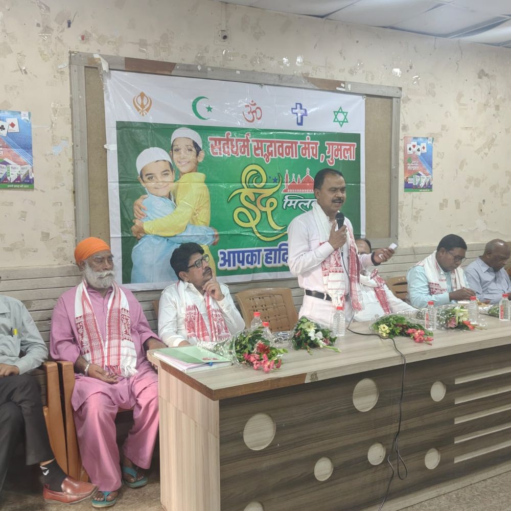 गुमला|स्थानीय रौनियार भवन में सर्वधर्म सद्भावना मंच की ओर से ईद मिलन समारोह का आयोजन किया गया। इस अवसर पर विभिन्न समुदायों के लोग एकजुट हुए। मुख्य अतिथि नगर परिषद उपाध्यक्ष रमेश कुमार चीनी उपस्थित थे। वहीं विशिष्ट अतिथि अंजुमन इस्लामिया के सदर मोसाहिद हाजमी और नगर परिषद के पूर्व उपाध्यक्ष कलीम अख्तर ने शिरकत की। कार्यक्रम की शुरुआत अतिथियों के स्वागत और आपसी शुभकामनाओं के साथ हुई। चीनी ने कहा कि ईद खुशियों और त्याग का त्योहार है। इस तरह के आयोजन समाज में प्रेम और विश्वास की नींव को मजबूत करते हैं। उन्होंने कहा कि गुमला हमेशा से आपसी सद्भाव का केंद्र रहा है और सर्वधर्म सद्भावना मंच का यह प्रयास सराहनीय है। सदर मोसाहिद ने कहा कि त्योहारों का असली मकसद मानवता की सेवा और प्रेम बांटना है। कलीम अख्तर ने जोर देते हुए कहा कि मजहब कोई भी हो, वह हमेशा शांति और एकता का मार्ग दिखाता है।