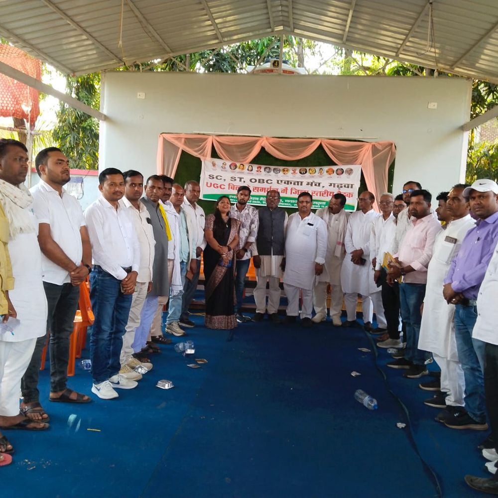 भास्कर न्यूज | गढ़वा शनिवार को गढ़वा शहर स्थित बंधन मैरिज हॉल में एससी, एसटी और ओबीसी समाज के लोगों की एक महत्वपूर्ण बैठक आयोजित की गई। बैठक की अध्यक्षता श्रीमती दीपमाला कुमारी ने की, जबकि कार्यक्रम का संचालन ओबीसी मोर्चा के जिला अध्यक्ष शुभम गुप्ता ने किया। बैठक में समाज के विभिन्न वर्गों के लोग बड़ी संख्या में उपस्थित रहे और सामाजिक मुद्दों पर विस्तार से चर्चा की गई। बैठक के दौरान वक्ताओं ने कहा कि समाज के लोगों को अपने अधिकारों के प्रति जागरूक होना जरूरी है। साथ ही यह भी निर्णय लिया गया कि यूजीसी के पक्ष में पूरे जिले में जागरूकता कार्यक्रम चलाया जाएगा। इसके अलावा एससी, एसटी और ओबीसी समाज के लोगों के साथ हो रहे अत्याचार और अन्याय के खिलाफ आवाज उठाने के लिए एक संगठित प्रयास किया जाएगा। बैठक में सर्वसम्मति से 31 सदस्यीय सहयोग मंडली का गठन किया गया, जिसका उद्देश्य सामाजिक एकजुटता को मजबूत करना और समाज के अधिकारों की रक्षा के लिए संघर्ष करना है। इस मंडली के मुख्य संयोजक के रूप में मनोज ठाकुर को जिम्मेदारी सौंपी गई। वहीं सहसंयोजक के रूप में शुभम गुप्ता, गोरखनाथ चौधरी और रामभजन गुप्ता को चुना गया। इसके अलावा संयोजक के रूप में सूरज कुमार चंद्रवंशी, बैद्यनाथ प्रसाद गौतम, अरविंद यादव, सोनू यादव और मनीष गुप्ता को जिम्मेदारी दी गई। बैठक में समाज के कई गणमान्य लोग मौजूद रहे। इनमें महेंद्र पाल, विकास पासवान, सुरेश गुप्ता, अखिलेश राम, राजेंद्र मेहता, अंबिका चौधरी, आशीष गुप्ता, अर्जुन मिंज, हरिदास तिर्की, कमलेश सिंह गोंड, गिरिवर राम, सुनील गौतम, अशरफी राम, अमानत अंसारी और ओपी चंद्रा सहित कई अन्य लोग शामिल थे।