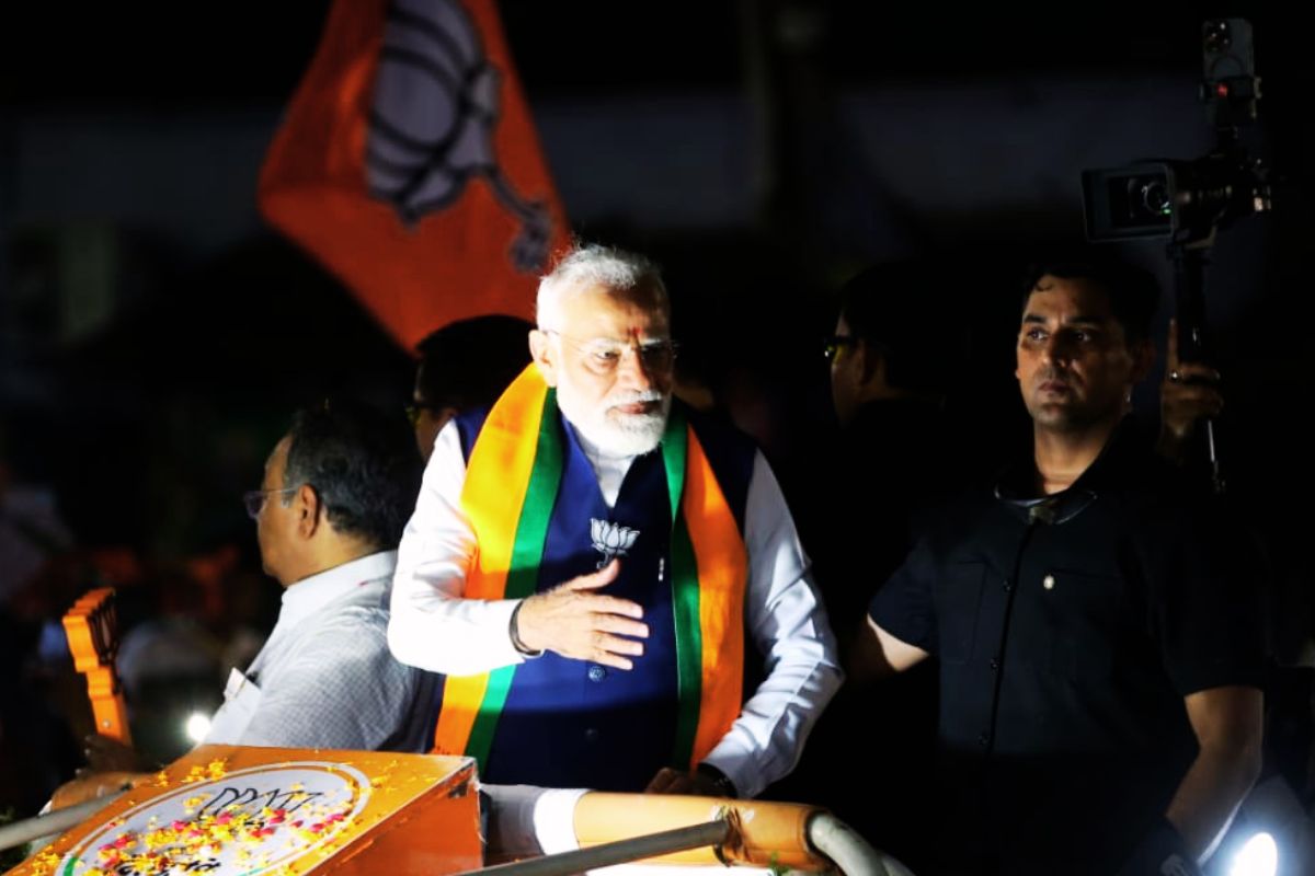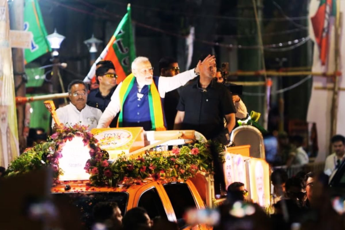 प्रधानमंत्री का रोड शो शाम के वक्त जब शुरू हुआ, तो नजारा देखने लायक था. मोदी एक विशेष भगवा रंग के वाहन पर सवार थे. इसे गेंदे के फूलों, उनकी विशाल तस्वीरों और भाजपा के चुनाव चिह्न ‘कमल’ के कटआउट से भव्य तरीके से सजाया गया था.
