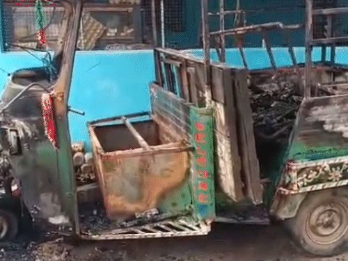 गुमला में घर के सामने खड़ी ऑटो फूंकी:देर रात लगी आग, सुबह तक राख में बदली गाड़ी, परिवार की रोजी-रोटी पर असर