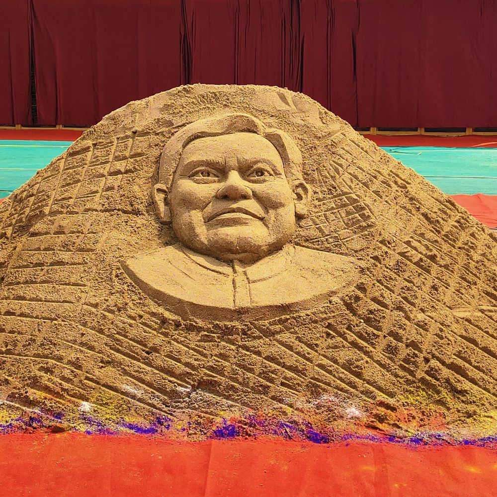जमुई में रेत से बनी नीतीश की तस्वीर बनी आकर्षण:बेगूसराय के किशन कुमार की कला की सराहना, कार्यक्रम स्थल पर लोगों की भीड़ जुटी