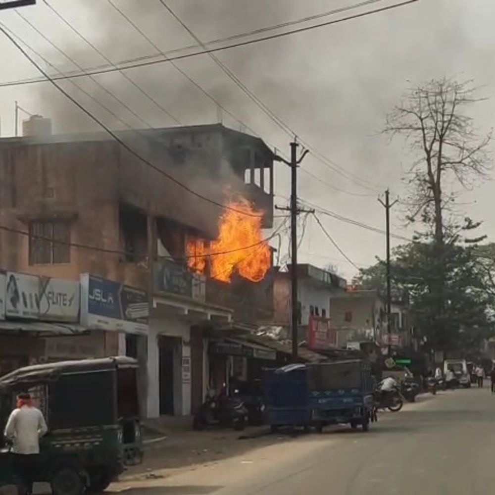 जामताड़ा बाजार की दुकान में लगी आग:शॉर्ट सर्किट से अग्रवाल ट्रेडर्स में लाखों का सामान जलकर राख