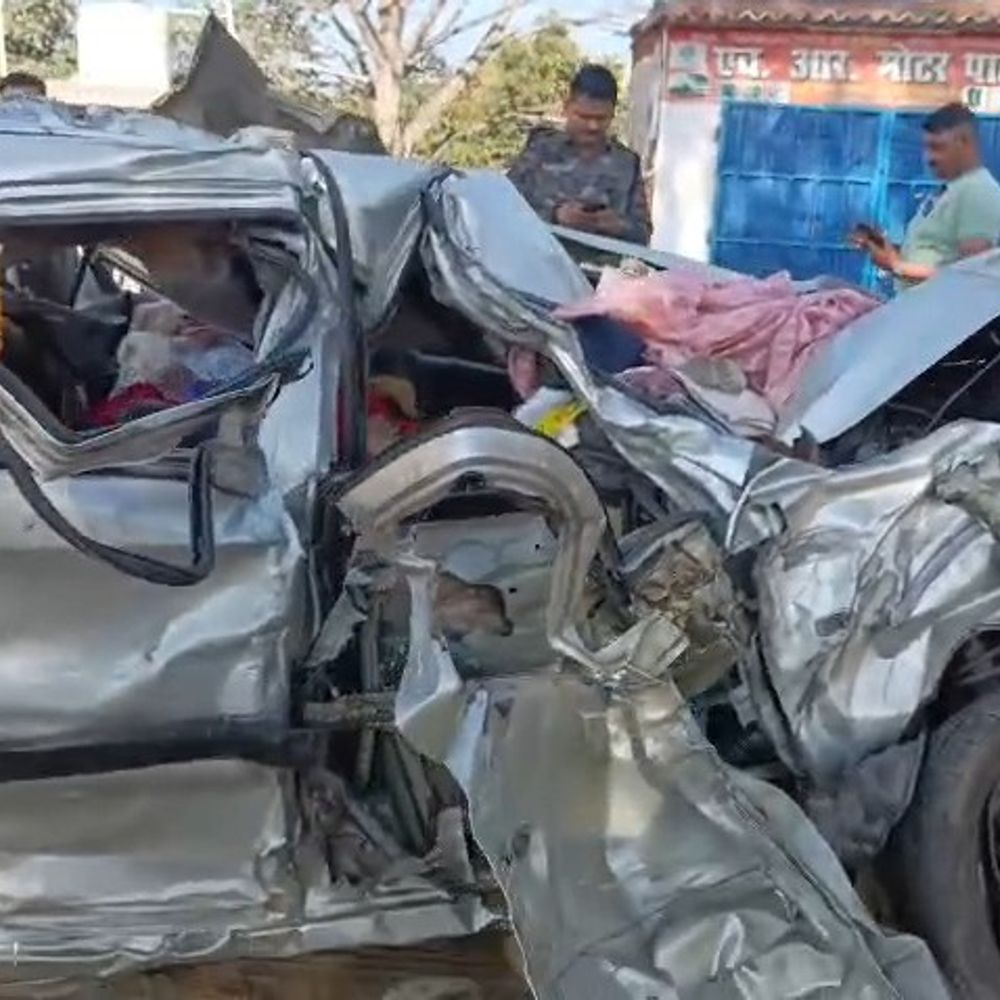 दनुआ घाटी में सड़क हादसा, एक की मौत:गया से धनबाद लौट रही कार, ट्रेलर और ट्रैक्टर से टकराई; चार घायल