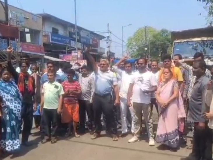 धनबाद के नुनूडीह में सड़क जाम:जलजमाव और जर्जर सड़क से परेशान ग्रामीणों ने किया प्रदर्शन