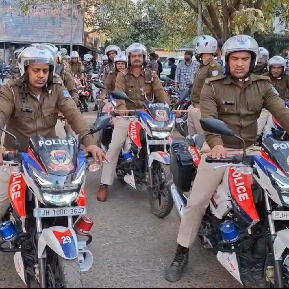 धनबाद में पुलिस का फ्लैग मार्च:50 पुलिसकर्मी सड़कों पर, अपराधियों पर शिकंजा कसने की तैयारी
