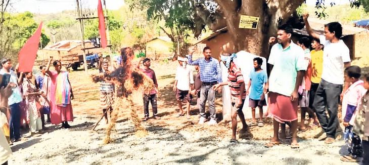 नोवामुंडी| प्रखंड के कादाजामदा पंचायत के सारबिल गांव से रूतागुटू तक निर्माणाधीन पीसीसी पथ निर्माण कार्य में लगे मजदूरों को न्यूनतम मजदूरी नहीं मिलने से नाराज मजदूरों ने संवेदक के खिलाफ प्रदर्शन कर पुतला फूंका । मजदूरों ने बताया कि सारबिल से जोजो साई गांव तक 1800 मीटर लंबाई पीसीसी पथ का निर्माण किया जा रहा है। पथ निर्माण कार्य में लगे मजदूरों से सुबह आठ बजे से शाम पांच बजे तक नौ घंटे काम लिया जाता है। इसी से नाराज मजदूरों ने पथ निर्माण की जिम्मेवारी लिए संवेदक राजीव बेदी का पुतला जलाया। पुतला दहन के दौरान राजीव बेदी मुर्दाबाद,ग्रामीण कार्य विभाग कार्य प्रमंडल चाईबासा के अशोक कुमार इंजीनियर मुरादाबाद,ग्रामीण मुंडा होश में आओ, ठेकेदार का पक्ष लेना बंद करो,कार्यस्थल पर योजना बोर्ड लगाना होगा,न्यूनतम मजदूरी समेत बकाया मजदूरी देना होगा,श्रम विभाग होश में आओ आदि नारेबाजी कर रहे थे। प्रदर्शन के दौरान मजदूरों ने ग्रामीण मुंडा पर आरोप लगाते बताया कि मजदूरों से 503 रुपए दैनिक मजदूरी भुगतान के लिए मास्टर रोल में मजदूरों से हस्ताक्षर कराया जाता है। मजदूरों को 300 से 350 रूपए दैनिक मजदूरी थमा दिया जाता है।