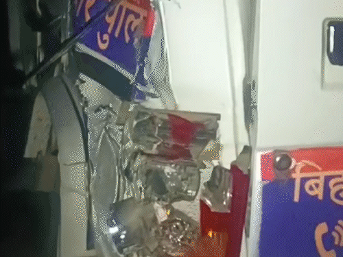 पटना में हाईवा ने डायल 112 गाड़ी को ठोका:टक्कर के बाद हाईवा में लगी आग, ड्राइवर फरार; पुलिसकर्मी बाल-बाल बचे