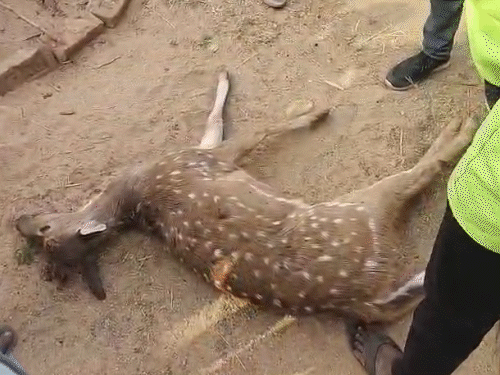 पानी की तलाश में गांव पहुंचा हिरण:चतरा में कटीले तार में फंसकर मौत, देर तक तड़पता रहा था, ग्रामीणों में आक्रोश