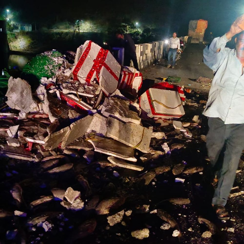 पुल की रेलिंग तोड़ मछली लदा ट्रक गिरा डैम में:हादसे में चालक लापता, उपचालक गंभीर रूप से जख्मी; ट्रक की तलाश जारी