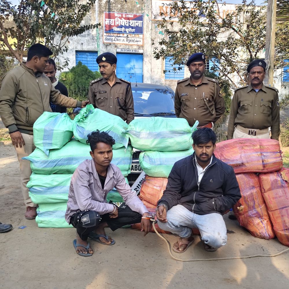 सुपौल जिले में अवैध शराब के खिलाफ चलाए जा रहे अभियान के तहत सिमराही मद्यनिषेध थाना पुलिस को बड़ी सफलता मिली है। पुलिस ने 45 पेटी अवैध शराब के साथ दो तस्करों को गिरफ्तार किया है। बरामद शराब की कुल मात्रा 1130 बोतल है। मद्यनिषेध थाना सिमराही के थानाध्यक्ष संजय कुमार सिंह ने बताया कि उन्हें गुप्त सूचना मिली थी। सूचना के अनुसार, नेपाल के बादशाह चौक से शराब की एक बड़ी खेप पिपरा सखुआ की ओर भेजी जा रही थी। इस सूचना के सत्यापन के बाद राघोपुर थाना क्षेत्र के चम्पानगर मार्ग पर वाहन जांच अभियान शुरू किया गया। 1130 बोतल अवैध शराब बरामद जांच के दौरान एक संदिग्ध कार को रोका गया और उसकी तलाशी ली गई। तलाशी में कार से कुल 45 पेटी में रखी 1130 बोतल अवैध शराब बरामद हुई। पुलिस ने मौके से दो तस्करों को भी गिरफ्तार किया। गिरफ्तार आरोपियों की पहचान प्रतापगंज थाना क्षेत्र के परसा निवासी मनीष कुमार और जयनगरा निवासी नीरज कुमार के रूप में हुई है। कार पर 2 अलग-अलग नंबर प्लेट पुलिस ने मौके से एक कार भी जब्त की है। जांच में सामने आया कि तस्कर पुलिस से बचने के लिए कार पर दो अलग-अलग नंबर प्लेट (BR11AH 3787 और WB74AB0321) लगाकर शराब की तस्करी कर रहे थे। थानाध्यक्ष ने शनिवार सुबह बताया कि पुलिस जब्त कार और गिरफ्तार आरोपियों से पूछताछ कर रही है। इस पूरे नेटवर्क की जानकारी जुटाई जा रही है और मामले में आगे की कानूनी कार्रवाई जारी है।