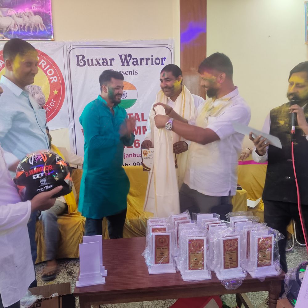 बक्सर में होली मिलन समारोह और डिजिटल वीर सम्मान:युवाओं को डिजिटल काम के लिए सम्मानित किया गया, भारत शर्मा व्यास मुख्य अतिथि