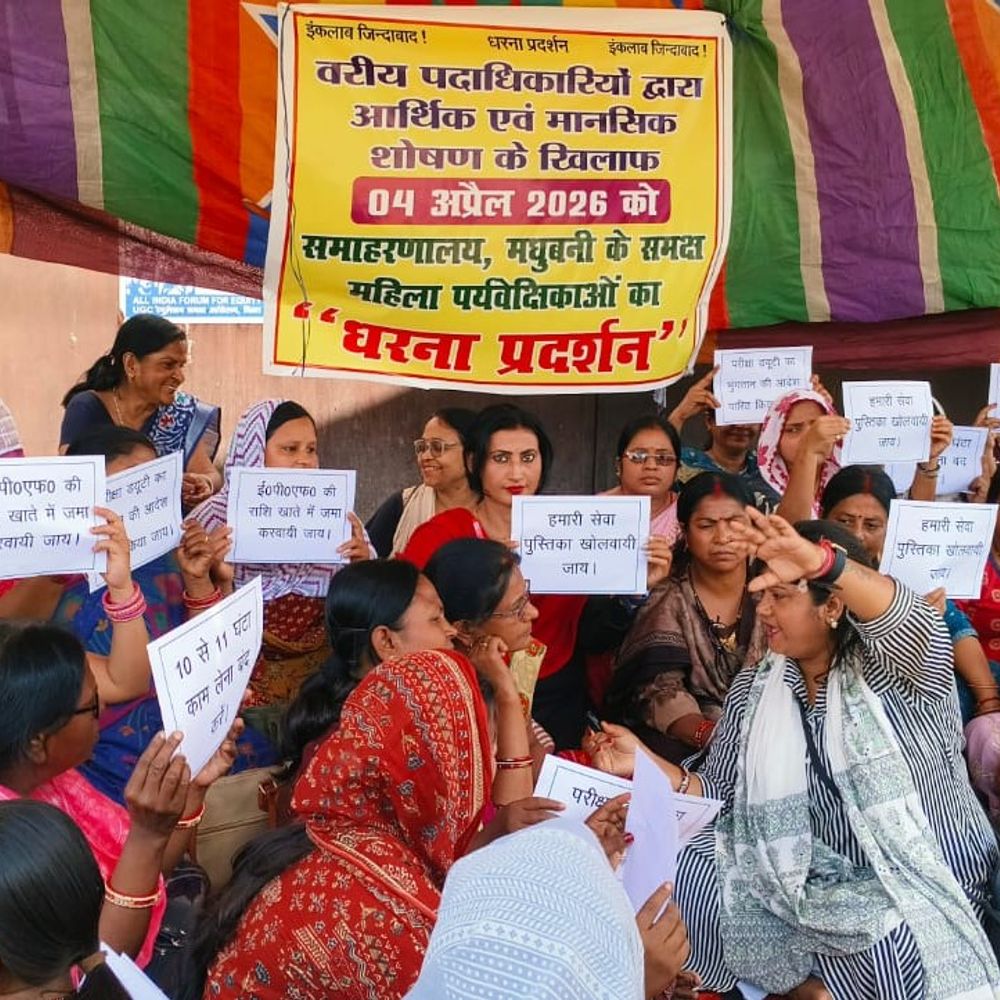 मधुबनी जिले की आंगनवाड़ी महिला पर्यवेक्षकों ने शनिवार को समाहरणालय के समक्ष एक दिवसीय धरना प्रदर्शन किया। उन्होंने विभागीय निर्देशों की अनदेखी, अतिरिक्त कार्यभार, मानसिक उत्पीड़न और आर्थिक शोषण जैसे गंभीर आरोप लगाए। महिला पर्यवेक्षकों के अनुसार, आंगनवाड़ी केंद्रों के संचालन का निर्धारित समय सुबह 7:30 बजे से 11:30 बजे तक है। हालांकि, उन्हें शाम 5:00 बजे तक कार्यालय में काम करने के लिए मजबूर किया जाता है। इससे उन्हें अतिरिक्त घंटे सेवा देनी पड़ती है, जिससे मानसिक दबाव बढ़ रहा है। उन्होंने यह भी बताया कि जिला स्तर पर हर महीने 100 अंकों की मूल्यांकन परीक्षा ली जाती है। इसमें कम अंक आने पर नौकरी समाप्त होने या मानदेय में कटौती का भय बना रहता है, जिससे महिला कर्मियों पर अनावश्यक मानसिक दबाव पड़ रहा है। प्रदर्शनकारियों ने आरोप लगाया कि मातृत्व अवकाश, आकस्मिक अवकाश और अर्जित अवकाश जैसे वैधानिक अधिकार लंबित रखे जा रहे हैं, जिससे उन्हें आर्थिक नुकसान हो रहा है। इसके अतिरिक्त, उनकी सेवा पुस्तिकाएं अब तक नहीं खोली गई हैं, जिससे उनकी सेवा संबंधी प्रक्रिया अधूरी है। महिला पर्यवेक्षकों ने बताया कि रविवार और अन्य छुट्टियों के दिनों में भी उनसे सुबह 10:00 बजे से शाम 5:00 बजे तक ड्यूटी ली जाती है। इसके बदले उन्हें न तो क्षतिपूर्ति अवकाश मिलता है और न ही अतिरिक्त मानदेय। परीक्षा ड्यूटी के दौरान भी उन्हें कोई पारिश्रमिक नहीं दिया जाता, जबकि अन्य कर्मियों को इसका भुगतान किया जाता है। ईपीएफ (कर्मचारी भविष्य निधि) को लेकर भी गंभीर अनियमितताओं के आरोप लगाए गए हैं। धरना प्रदर्शन कर रही महिला पर्यवेक्षकों ने प्रशासन से अपनी समस्याओं के शीघ्र समाधान की मांग की है। उनकी मांगों में कार्य के निर्धारित समय का पालन, अवकाश और मानदेय से संबंधित लंबित मामलों का निपटारा तथा ईपीएफ की राशि तत्काल जमा कराना शामिल है। उन्होंने चेतावनी दी है कि यदि उनकी मांगों पर विचार नहीं किया गया, तो वे आगे उग्र आंदोलन करने को बाध्य होंगी।