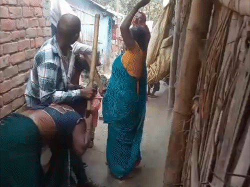 महिला को डायन बताकर घसीटकर डंडे से पीटा; VIDEO:पति के गैरमौजूदगी में घर में घुसे लोग; एक लाख लूटे, बच्चों के साथ भी मारपीट