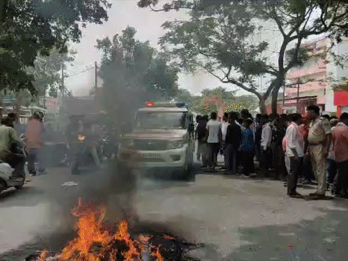 मुजफ्फरपुर में बस ने बाइक सवार भाइयों को रौंदा:रजिस्ट्री कार्यालय के रिटायर्ड कर्मी की मौत, हादसे के बाद लोगों ने सड़क जामकर की आगजनी
