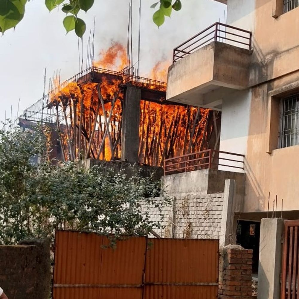 रामगढ़ के कुजू में निर्माणाधीन अपार्टमेंट में लगी आग:8 साल से बंद पड़े भवन में बांस-बल्ली जलकर राख, आग लगने की वजह स्पष्ट नहीं