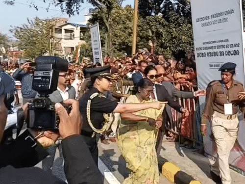 राष्ट्रपति द्रौपदी मुर्मू के जमशेदपुर दौरे के दौरान बारीडीह में एक विशेष दृश्य देखने को मिला। मणिपाल टाटा मेडिकल कॉलेज में कार्यक्रम के बाद राष्ट्रपति ने अपना काफिला रुकवाया और लोगों से मिलने के लिए गाड़ी से उतरकर पैदल चलीं। कॉलेज कार्यक्रम समाप्त होने के बाद जब राष्ट्रपति का काफिला बाहर निकला, तो सड़क किनारे बड़ी संख्या में लोग खड़े थे। उन्हें देखकर राष्ट्रपति ने अपना वाहन रुकवाया। इसके बाद वह स्वयं गाड़ी से उतरकर करीब 150 कदम तक पैदल चलीं और हाथ हिलाकर लोगों का अभिवादन स्वीकार किया। भीड़ में मौजूद लोगों ने तिरंगा लहराते हुए “भारत माता की जय” के नारे लगाएं। राष्ट्रपति के आम लोगों के बीच आने से सभी उत्साहित दिखे राष्ट्रपति ने बच्चों से मुलाकात की और उन्हें चॉकलेट भी बांटी। एक बच्ची ने बताया कि राष्ट्रपति ने उसे अपने हाथों से चॉकलेट दी। स्थानीय महिला परविंदर ने कहा कि वह कई घंटों से राष्ट्रपति की एक झलक पाने के लिए खड़ी थीं। राष्ट्रपति के आम लोगों के बीच आने से सभी उत्साहित दिखे। उन्होंने बताया कि राष्ट्रपति ने उनकी बेटी को चॉकलेट देने के साथ आशीर्वाद भी दिया। इस दौरान सुरक्षा व्यवस्था पूरी तरह दुरुस्त रही और कहीं भी अव्यवस्था की स्थिति उत्पन्न नहीं हुई। लोगों ने राष्ट्रपति को बेहद करीब से देखा और उनका अभिवादन किया। इससे पहले, राष्ट्रपति ने कदमा स्थित श्री जगन्नाथ आध्यात्मिक एवं सांस्कृतिक धर्मार्थ केंद्र में भूमि पूजन कार्यक्रम संपन्न किया था। पौधारोपण कर पर्यावरण संरक्षण का संदेश दिया मणिपाल टाटा मेडिकल कॉलेज में राष्ट्रपति ने विभिन्न सत्रों में उत्कृष्ट प्रदर्शन करने वाले छात्रों के साथ फोटो सेशन किया और मेधावी विद्यार्थियों से संवाद भी किया। इस कार्यक्रम को “परिचय सम्मेलन” नाम दिया गया। राष्ट्रपति ने कॉलेज परिसर का निरीक्षण किया तथा पौधारोपण कर पर्यावरण संरक्षण का संदेश दिया। कॉलेज प्रबंधन ने जानकारी दी कि परिसर में “द्रौपदी मुर्मू स्पोर्ट्स एंड फूड कैंपस” विकसित करने की दीर्घकालिक योजना पर कार्य किया जाएगा। ———————————– पढ़िए ये भी खबर जमशेदपुर में राष्ट्रपति मुर्मू ने किया भूमि पूजन:समाज के सर्वांगीण विकास का केंद्र बनेगा कैंपस, समाज के लोगों में दिखा उत्साह जमशेदपुर के कदमा इलाके में गुरुवार को ऐतिहासिक क्षण देखने को मिला, जब श्री जगन्नाथ आध्यात्मिक एवं सांस्कृतिक केंद्र के निर्माण के लिए भूमि पूजन कार्यक्रम आयोजित हुआ। राष्ट्रपति द्रौपदी मुर्मू ने वैदिक मंत्रोच्चार के बीच भूमि पूजन कर केंद्र की आधारशिला रखी। इस मौके पर राज्यपाल संतोष गंगवार, मुख्यमंत्री हेमंत सोरेन और केंद्रीय मंत्री धर्मेंद्र प्रधान की उपस्थिति ने कार्यक्रम 