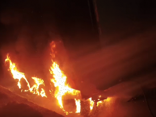 लातेहार में अपराधियों ने कोयला लदे हाइवा में लगाई आग:फायरिंग कर ड्राइवर को धमकाया, तीन अपराधियों ने पथराव कर गाड़ी को रोका