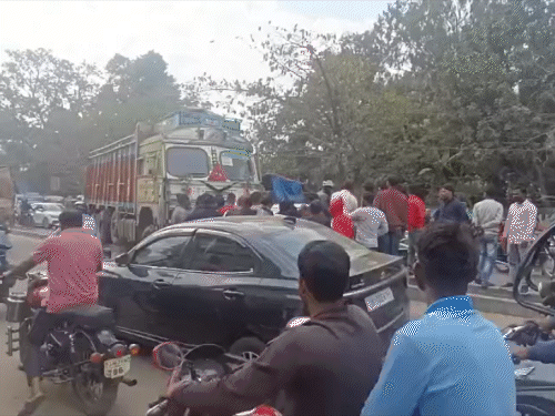 शिक्षक की कार को ट्रक ने मारी टक्कर:गिरिडीह में दूर तक घसीटता ले गया ट्रक, शिक्षक की बाल-बाल बची जान, चालक फरार