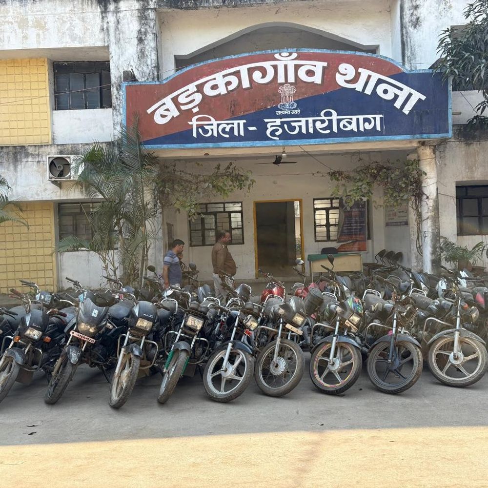 हजारीबाग पुलिस ने चोरी की 23 मोटरसाइकिल बरामद की:बाइक चोर गिरोह का पर्दाफाश, वाहन चेकिंग के दौरान एक आरोपी गिरफ्तार