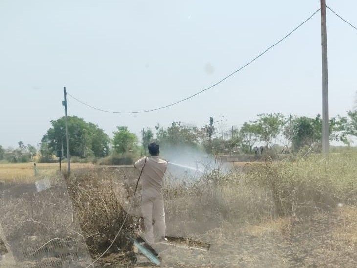 हाईटेंशन में शॉट सर्किट से लगी गेहूं खेत में आग:शेखपुरा में 4 किसानों की 3 बीघा फसल जली,1लाख से अधिक का नुकसान