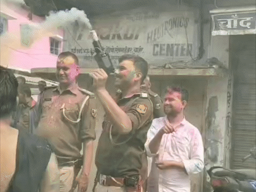 होली में शांति के लिए सड़कों पर पुलिस अधिकारी:शहर में निकाला फ्लैग मार्च, संदिग्धों और वाहनों की भी हो रही जांच-पड़ताल