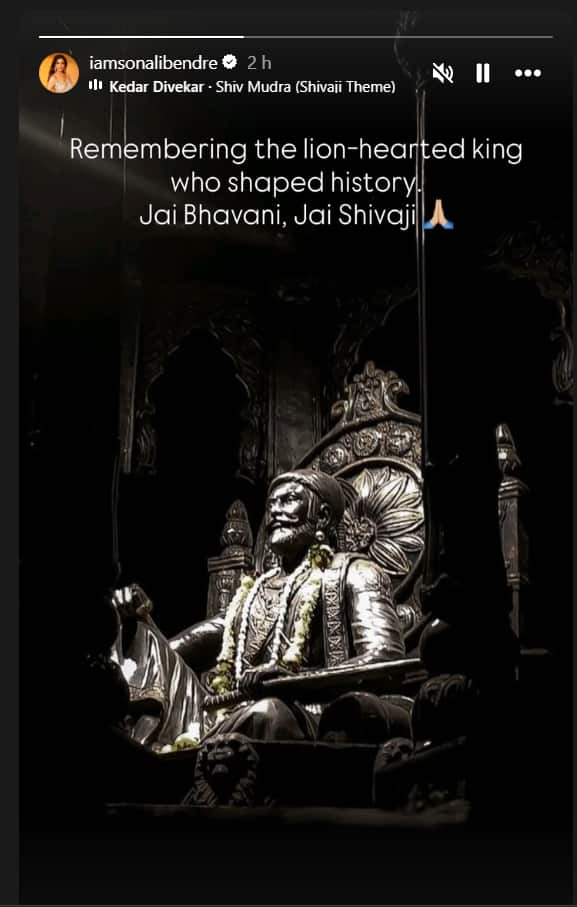 Sharing a picture of the revered Maratha warrior king’s statue, Sonali penned a powerful caption. She wrote, “Remembering the lion-hearted king who shaped history. Jai Bhavani, Jai Shivaji.”