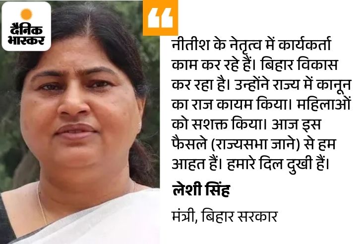 नीतीश के हर फैसले के साथ खड़ी रहने वाली लेशी सिंह ने कहा, ‘उनके राज्यसभा जाने के निर्णय से सभी कार्यकर्ता आहत हैं। 1994 में मैं नीतीश कुमार के नेतृत्व में समता पार्टी से जुड़ी थी। इसके बाद दे उनके साथ हूं।’