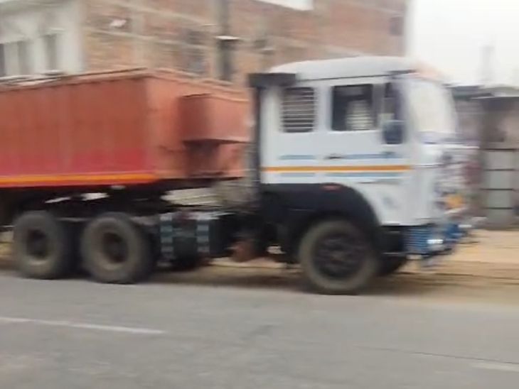 सड़क पर खड़े ट्रक।