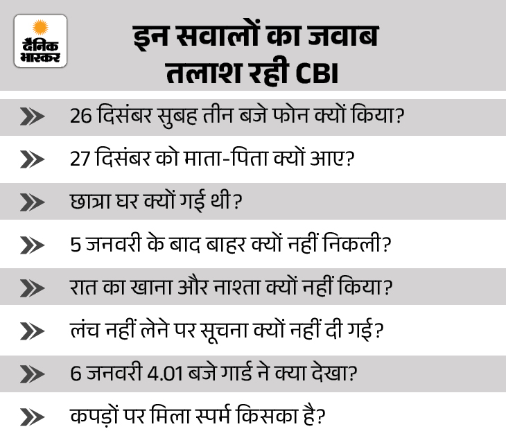 घटना की सारे रहस्य हॉस्टल के अंदर ही हैं। CBI की टीम ने परिवार से पहले दिन बात की थी, तभी उन्हें बताया गया कि हॉस्टल संचालिका, उसके बेटे और वहां की वार्डेन को सामने बैठाकर पूछताछ कीजिए। इसके बाद पूरी असलियत सामने आ जाएगी।