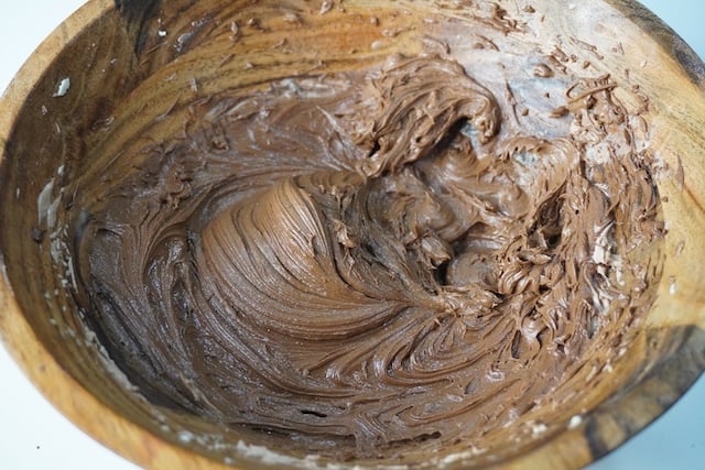 14)As you beat in the chocolate, the mixture will get even more thick, creamy. Don’t over whip.