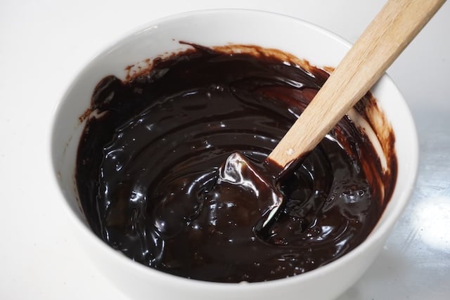 3)Remove the chocolate from microwave and mix until smooth and glossy. Now set aside to cool completely.