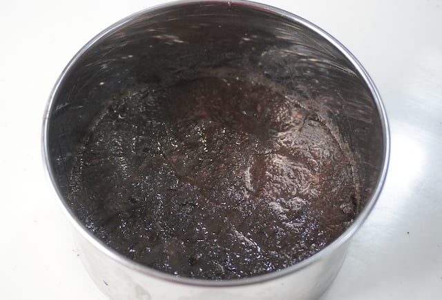 8)Now transfer this to the cake pan and spread evenly and press gently until evenly pressed. Place this in fridge and allow it to set.