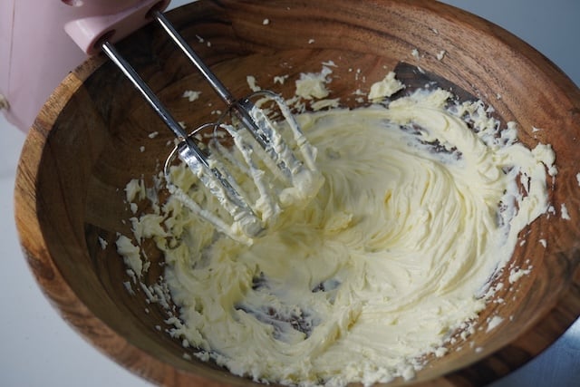 First, the cream cheese should be at room temperature which is very important. If your cream cheese is cold, it would never get creamy. Always whip your cream cheese till it is creamy for a minute before adding in sugar.