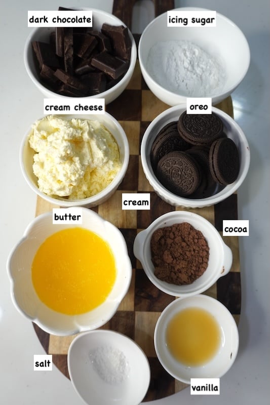 Temperature is key – Cream cheese should be at room temperature. Cream should be super cold for easy whipping. Melted chocolate should cool completely before adding into cream cheese filling.