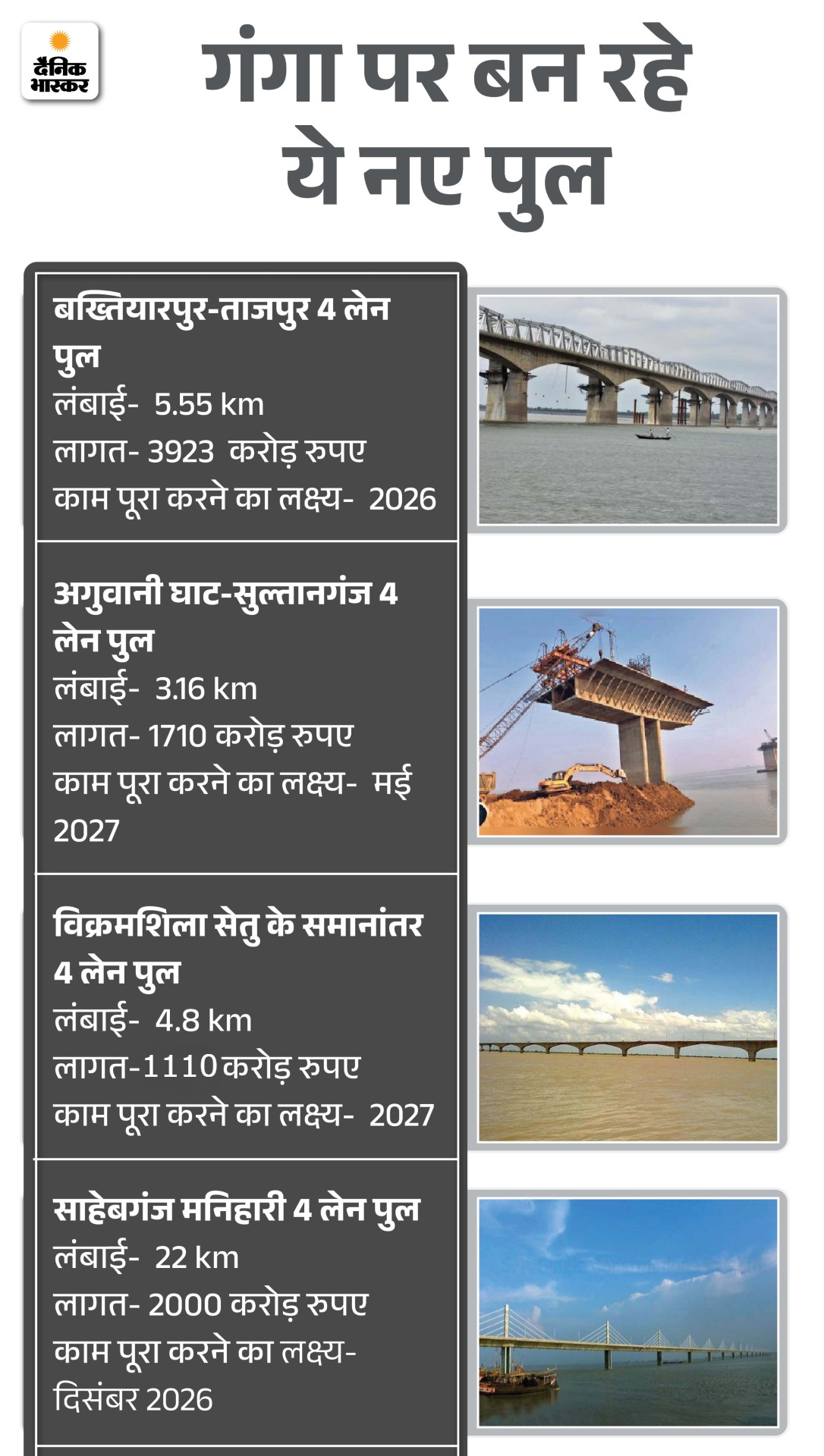सबसे पहले जानिए, बिहार में गंगा नदी पर कौन से 8 नए पुल बन रहे? कितना काम हुआ?