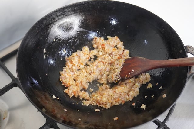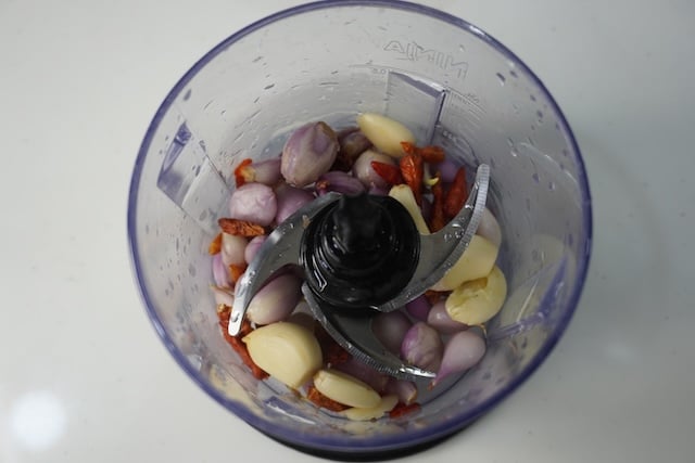 Flavourings – be generous with garlic, since they are the main flavouring. You can use onions instead of shallots. Adjust the quantity of Thai red chillies depending on your taste and spice tolerance.