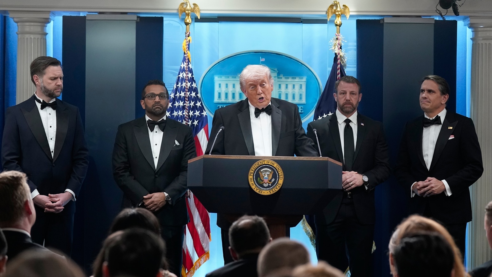 US Secret Service agents respond near President Donald Trump during the White House Correspondents Dinner in Washington. (AP Photo)