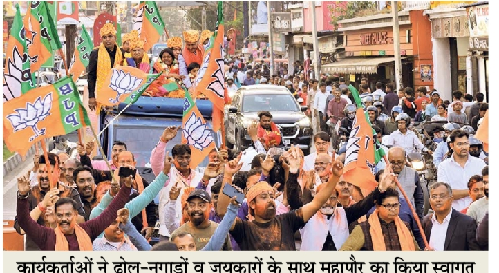 कार्यकर्ताओं ने ढोल-नगाड़ों व जयकारों के साथ महापौर का किया स्वागत